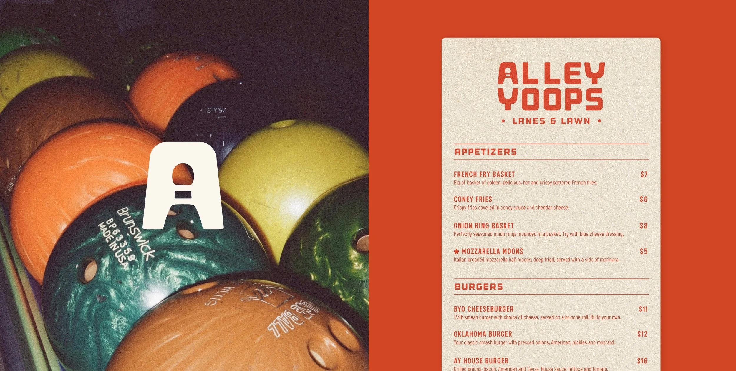 The Alley Yoops team partnered with us to craft a distinctive name, cohesive visual identity, and strategic concept that reflected the heart of the community. Together, we reimagined the outdated bowling alley into a welcoming destination for quality food and family-friendly fun—inviting both locals and visitors to gather, play, and feel at home.