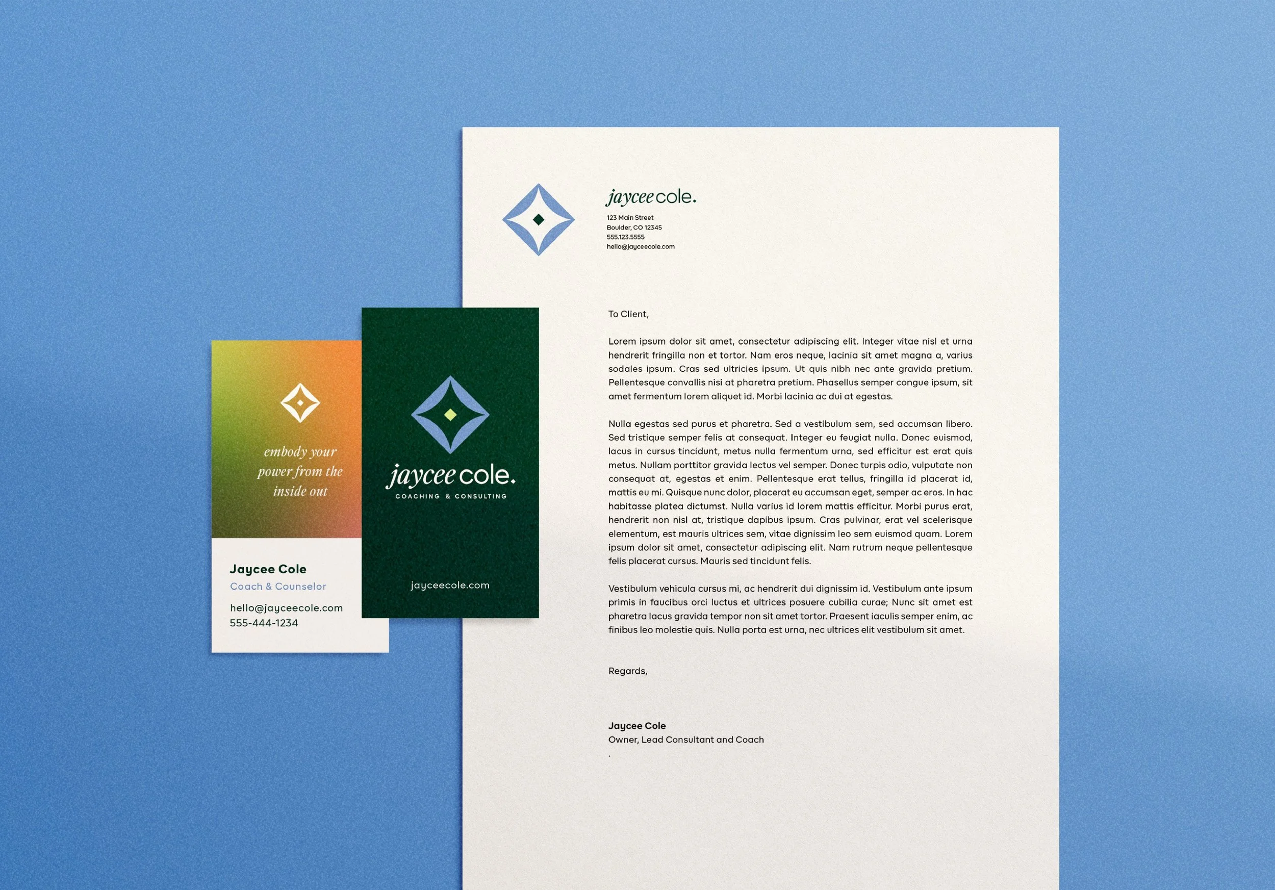 Jaycee Cole Coaching & Consulting empowers high-achieving, growth-oriented individuals to lead with authenticity, resilience, and clarity. Jaycee needed a grounded, professional aesthetic that felt both confident and approachable. We created a brand and website designed to speak to clients who are straddling two worlds: the structure of corporate leadership and the depth of personal growth.